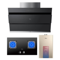 美的(Midea)抽油烟机 20立方大吸力侧吸式抽油烟机家用吸油烟机智能家电排烟机吸烟机 油烟机+5.0KW天燃气灶+1