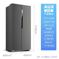 奥克斯(AUX)风冷无霜双开门冰箱 360°双循环 家用纤薄大容量节能低音对开门冰箱 钛银灰 410升