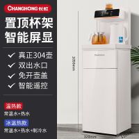长虹家用智能立式饮水机下置水桶冷热多功能全自动2023新款茶吧机 [置顶杯架]白色+双出水口+遥控+彩显屏 温热