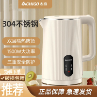 志高CHIGO电热水壶家用双层防烫自动断电保温烧水壶_杏色-1.8L升级304内胆智能保温
