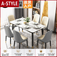 苏宁放心购现代北欧轻奢大理石餐桌抖音小户型家用6人铁艺餐桌椅组合长方形A-STYLE