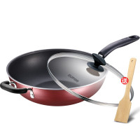 34cm 燃煤气电磁炉通用-红色 苏泊尔炒锅不粘锅少油烟炒菜锅34cm 燃煤气灶电磁炉通用