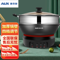 奥克斯(AUX)电热锅家用炒锅多功能电热锅铸铁电锅煮饭蒸炖一体式插电炒菜锅 ()34cm单笼