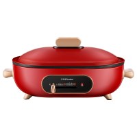 荣事达电火锅锅家用煎烤一体电炒锅电煮锅多功能料理锅 复古红