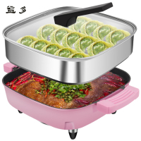 益多方锅韩式多功能电热锅 多段火力调节5L大容量不粘电煮锅家用 电火锅 带蒸笼粉色 JN-09