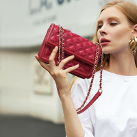 小香风菱格包包chic链条包2019新款高级感洋气红色牛皮单肩斜挎包