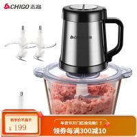 志高(CHIGO)绞肉机家用电动2L不锈钢多功能料理机碎肉打肉切碎搅拌机 两副刀头 1.8升 玻璃碗 (2副刀头+剥蒜器