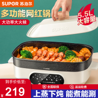 苏泊尔(SUPOR)电火锅多功能电煮锅6L家用大容量麦饭石色不粘电锅电热火锅 [6升麦饭石鸳鸯锅]