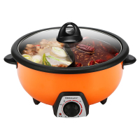 荣事达分体式鸳鸯电火锅家用插电3-6人5不粘锅4L分离可拆卸电煮锅 黄色4升