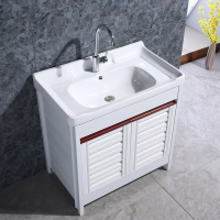 太空铝定制洗衣柜陶瓷洗衣盆带搓板闪电客阳台洗衣池室外落地柜洗手一体台盆 60厘米洗衣柜[含龙头下水] 抖音
