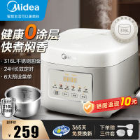 美的(Midea)电饭煲 3L家用电饭锅316L不锈钢内胆无涂层煮饭锅 1-3人多功能0涂层煲汤煮粥锅MB-RE387S