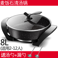 奥克斯鸳鸯电火火锅锅家用多功能宿舍电炒菜炒锅电热煮烧烤一体锅 8L加厚款麦饭石清汤锅+大礼包