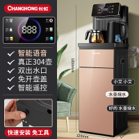 长虹家用智能立式饮水机下置水桶冷热多功能全自动2023新款茶吧机 [跑马灯大显屏+语音] 金色+双出水口+遥控 温热