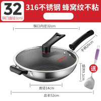 316不锈钢炒锅32cm 炊大皇316不锈钢炒锅不粘家用炒菜平底蜂窝不粘锅燃气电磁炉锅具