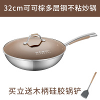 可可棕多层钢炒锅32 炊大皇不粘锅炒锅家用304不锈钢炒菜锅电磁炉煤气灶专用平底锅具