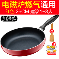 26cm红色燃气电磁炉通用/无盖 苏泊尔平底锅不粘锅煎锅煎烙饼牛排鸡蛋小号家用多功能燃气灶适用