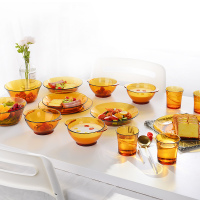 [Duralex多莱斯] 法国进口欧式餐具杯碗碟套装家用钢化玻璃微波炉可加热 6人16件套琥珀色简约款