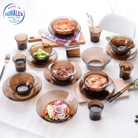 [Duralex多莱斯] 法国进口欧式餐具碗碟套装家用钢化玻璃微波炉可加热 6人22件套咖啡色螺纹B款