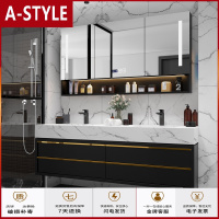 苏宁放心购轻奢岩板一体双面盆浴室柜组合简约现代洗手洗脸盆柜卫浴柜洗漱台A-STYLE