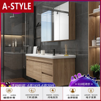 苏宁放心购岩板轻奢浴室柜组合实木现代简约吊柜洗手池卫生间洗漱台盆卫浴柜A-STYLE