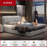 苏宁放心购真皮床现代简约1.8米双人床主卧婚床1.5米单人床欧式皮艺床榻榻米A-STYLE家具