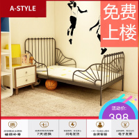 苏宁放心购伸缩床铁艺儿童床带护栏可调节女孩男孩公主床小户型省空间单人床A-STYLE家具