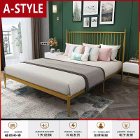苏宁放心购北欧轻奢ins网红钢管床1.8米双人床1.5金色单人床卧室公主铁艺床A-STYLE家具
