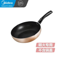 美的(Midea)喆物麦饭石色不粘锅炒锅家用平底电磁炉炒菜锅平底燃气煤气灶适用 金色28cm 不带盖 明火专用