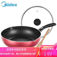 美的麦饭石色不粘锅家用炒锅电磁炉不沾锅煤气灶适用炒菜专用CJ28WOK301 [酒红色]28CM口径