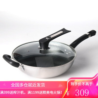 九阳(Joyoung)炒锅不粘锅30cm 炒菜锅 304不锈钢 平底煎锅 电磁炉煤气燃气明火通用锅具 锅盖可立 [可立锅