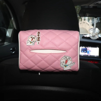 车载纸巾盒抽多功能创意挂式可爱汽车挂遮阳板扶手箱餐巾抽纸盒 小新美少女粉色-纸巾盒 抖音