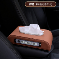 新款车载纸巾盒座式扶手创意汽车用中控夜光临时停车牌餐巾抽纸盒 棕色带停车卡 抖音