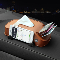 新款车载纸巾盒汽车创意用品多功能抽纸盒车模型手机支架插卡器车内饰 棕黑色 抖音