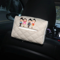 韩国创意汽车椅背遮阳可爱抽纸盒 多功能挂式车用固定车载纸巾盒 嘴唇三公仔黑纸巾盒 抖音