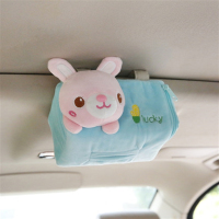 汽车内饰用品车载车用纸巾盒 男女创意遮阳板挂式天窗卡通抽纸盒 大号(粉色小兔天蓝色底) 抖音