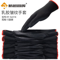 新越昌晖 乳胶皱纹劳保手套防护浸胶挂胶防滑耐磨涂胶胶皮工业工地手套12副/均码 XY-S2214