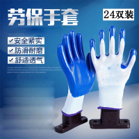 手套劳保浸胶耐磨工作塑胶橡胶工业带胶胶皮手套丁腈黑色24双_L 无标无字蓝色12双