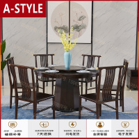 苏宁放心购新中式餐桌实木桌椅组合1.38米定制餐桌带大理石转盘乌金木黑檀木A-STYLE