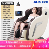 [腰背艾草热敷]奥克斯(AUX)按摩椅家用全身小型电动太空舱全自动家用型老人颈椎腰背按摩沙发S690 顶配白+7寸触控屏