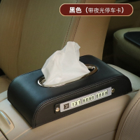 新款车载纸巾盒座式扶手创意汽车用中控夜光临时停车牌餐巾抽纸盒 黑色带停车卡 抖音