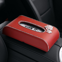 汽车纸巾盒车载纸巾盒车抽纸盒座式镶钻天鹅皇冠纸巾盒车用创意 山茶花纯红款送(纸巾+防滑垫) 抖音