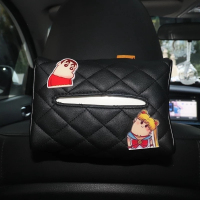 车载纸巾盒抽多功能创意挂式可爱汽车挂遮阳板扶手箱餐巾抽纸盒 小新美少女黑色-纸巾盒 抖音