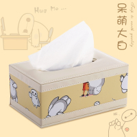 简约皮革纸巾盒 欧式家用客厅茶几餐巾纸盒 创意汽车用抽纸盒北欧 清新淡雅 呆萌大白[小号] 抖音