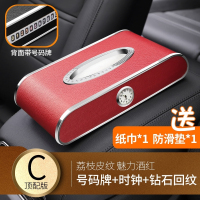 车载纸巾盒多功能座式扶手创意车内夜光临时停车牌餐巾抽纸盒 C款酒红(号码牌+时钟+镶钻)送纸巾*1防滑垫*1