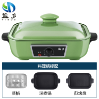 益多 多功能锅料理锅可分离式电烧烤锅家用电火锅蒸锅烧烤炉电煮锅 绿色-标配(深锅+煎烤盘+蒸格) LZW-1901A