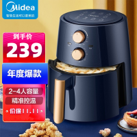 美的(Midea)空气炸锅 4.2L大容量家用煎炸锅 不粘大功率空气烤多功能薯条机电炸锅MF-KZ42E101L(蓝色)