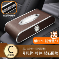 车载纸巾盒多功能座式扶手创意车内夜光临时停车牌餐巾抽纸盒 C款深棕(号码牌+时钟+镶钻)送纸巾*1防滑垫*1