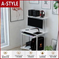 苏宁放心购双层电脑桌台式机家用简易小型可移动迷你卧室简约钢化玻璃书桌子A-STYLE家具