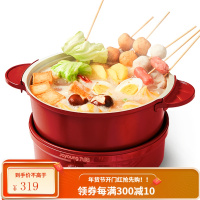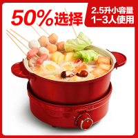 九阳电火锅家用多功能学生宿舍炒蒸煮煎2人分体式小型鸳鸯电煮锅 红色