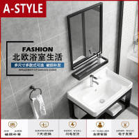 苏宁放心购小户型落地式洗手盆洗脸盆柜组合阳台陶瓷一体台盆卫生间洗漱台A-STYLE